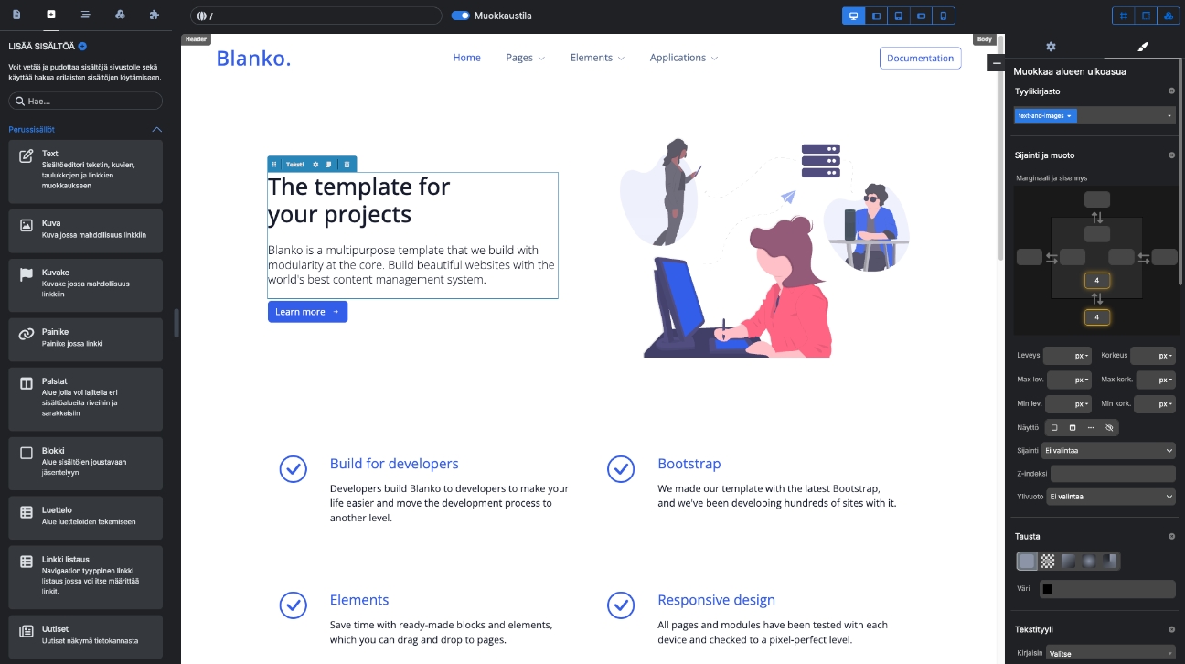 Muokkaa sisältöjä suoraan sivunäkymässä ja näe lopputulos heti.
